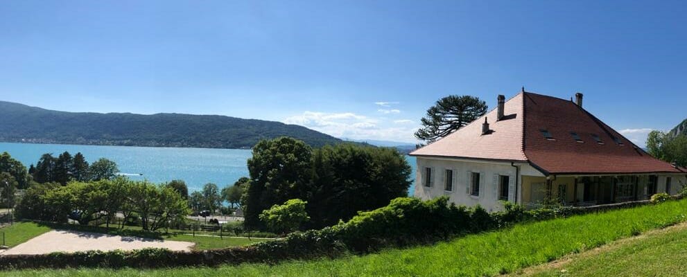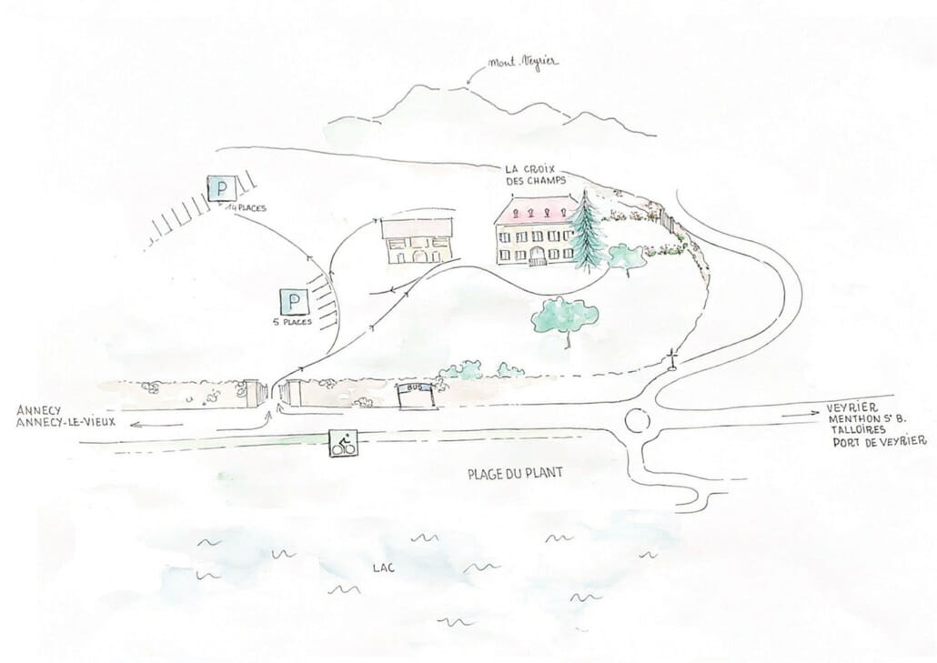 En arrivant à Annecy suivre la direction « lac » puis aller en direction de Veyrier du lac, Talloires en prenant la RD909 qui fait le tour du lac.